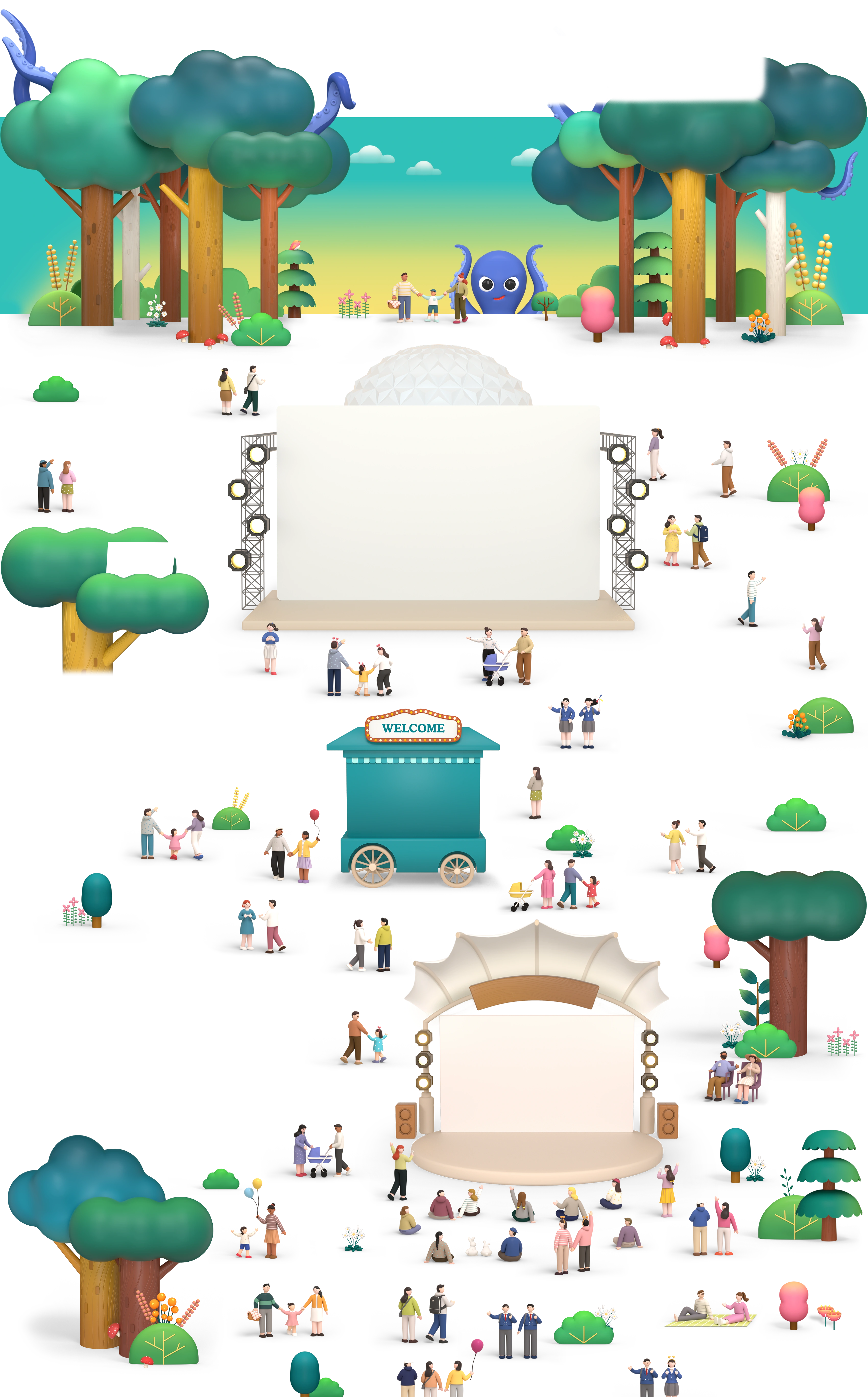 출입구, 고객동선, 주차장, 피크닉, 놀이시설, 부속건물